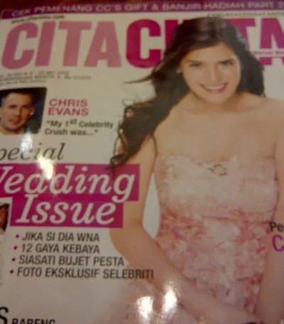 Malam ini iseng-iseng mampir ke Cali Deli, nostalgia tempat jajanan waktu tinggalnya masih nebeng nyokap. Di sana ada tumpukan majalah yang bisa dibaca di tempat. Ida ambil beberapa, salah satunya Cita Cinta edisi Mei 2012 ini.