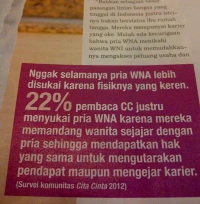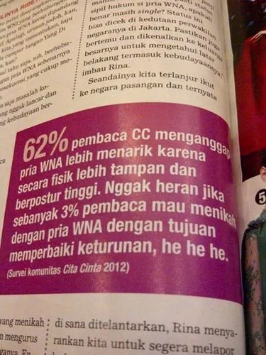 Berikutnya survey tentang mengapa cewek Indonesia tertarik dengan pria bule: