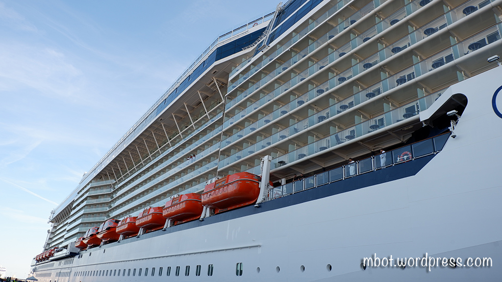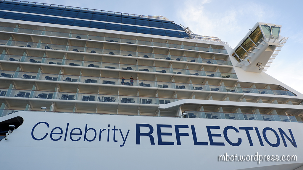 Dari jarak sekitar 1 KM menjelang pelabuhan, kapal Celebrity Reflection dan Celebrity Silhouette yang bakal nganter rombongan Oriflame jalan-jalan, udah keliatan. Gak heran, mengingat deknya aja ada 16!