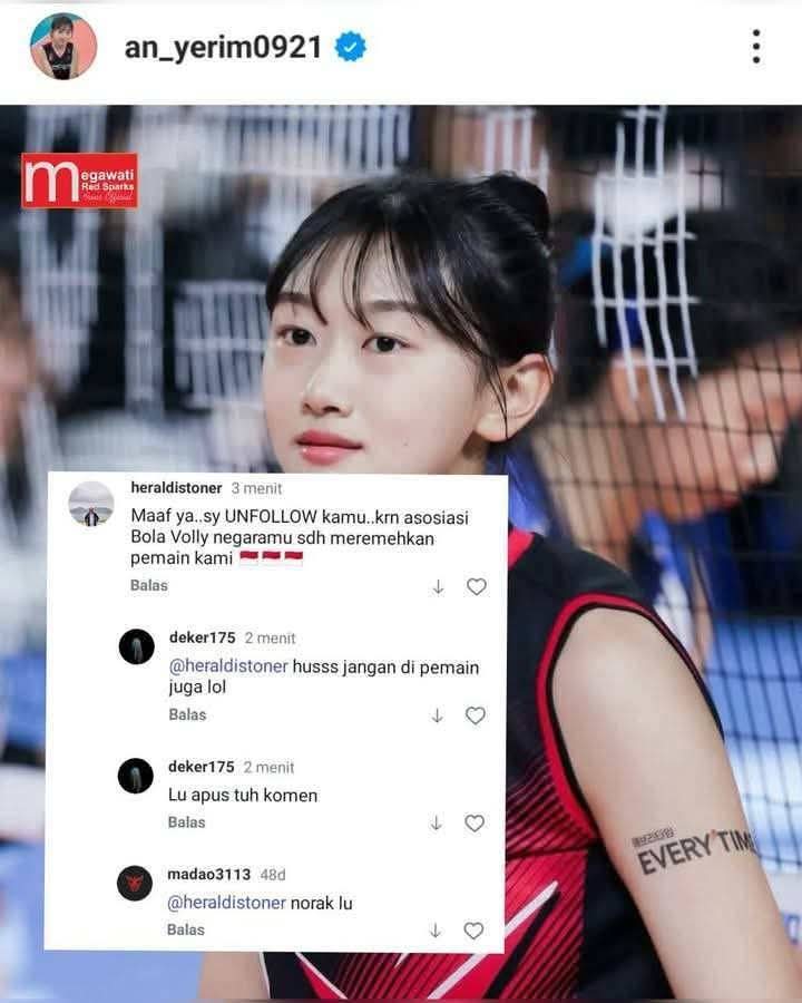 Yang paling ajaib ada netijen komentar di akun An Ye-rim, pemain muda Red Sparks, mengumumkan bahwa orang ini meng-unfollow An Ye-rim karena kecewa Kovo nggak milih Mega. Mungkin kata An Ye-rim dalam hati, “Jaka Sembung bawa golok…”